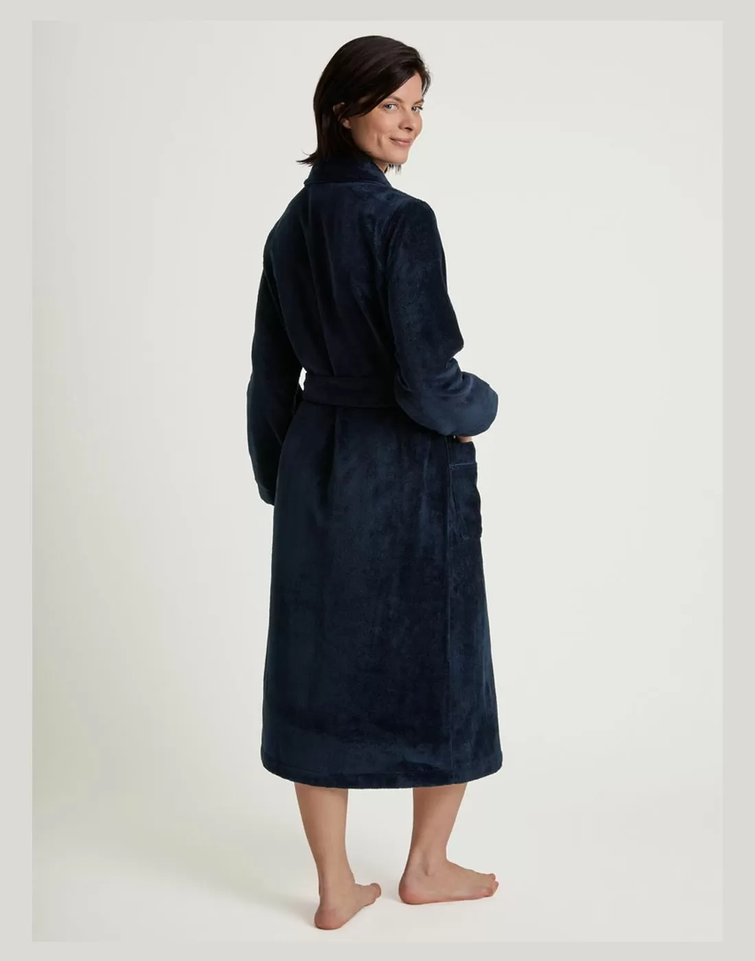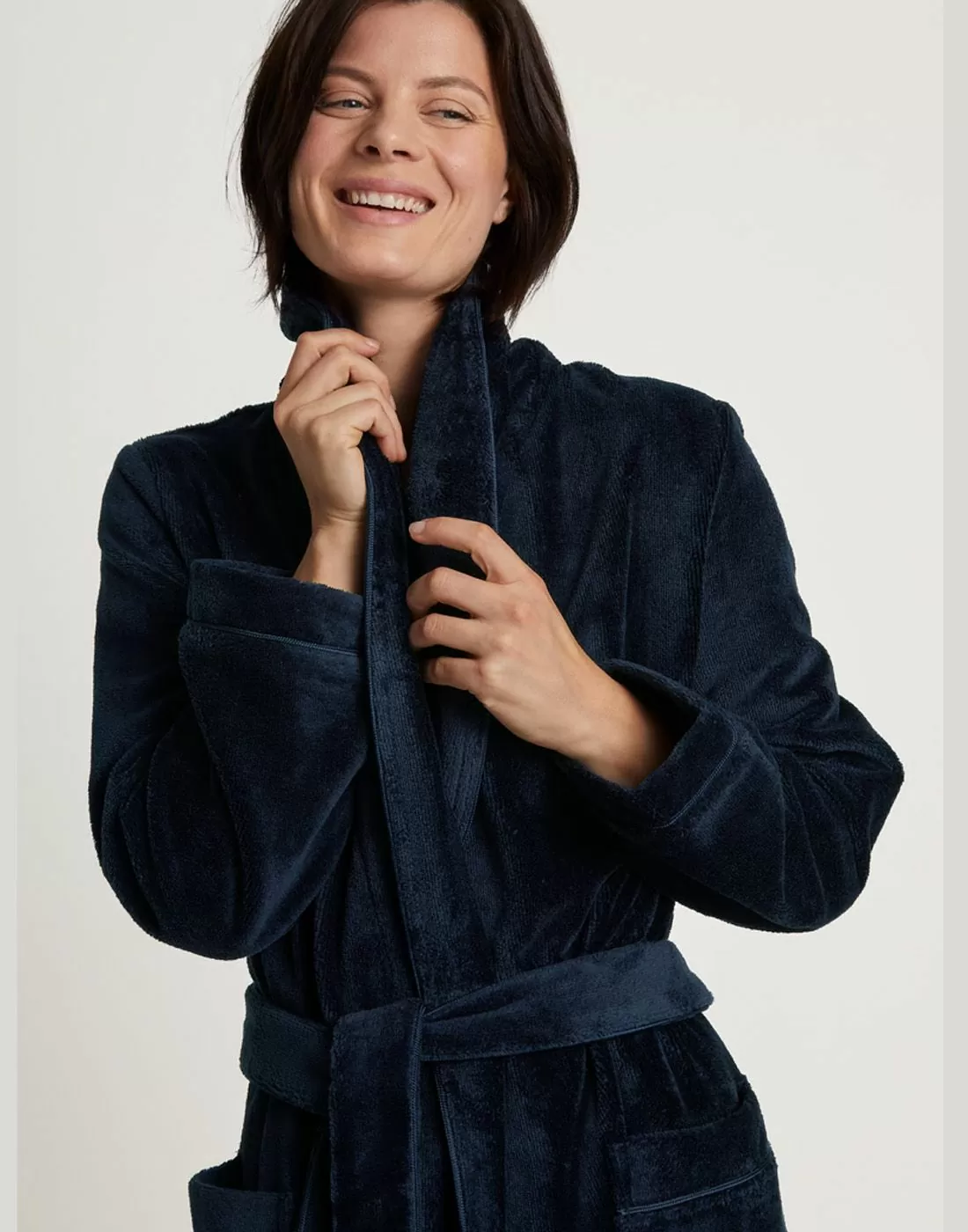 Calida morgenkåpe new dark lapis blue;  nytt produkt i Cosy-shower serien, en serie Marinka selger mye av; veldig gode produkter