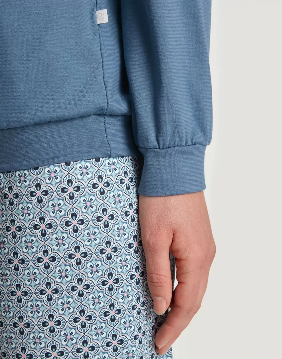 ORNAMENT NIGHTS nattøy-serien har et fint trykk og 100 % bomull i mykt single jersey-stoff.Ren og hudvennlig bomull for en god natts søvn og optimal komfort. Pysjamasen har stretchy, formbevarende single jersey-stoff som er både slitersterkt og lettstelt. Calida Ornament Dreams Pysjamas Placid Blue har myke mansjetter på faldene og en komfortabel, avslappet passform