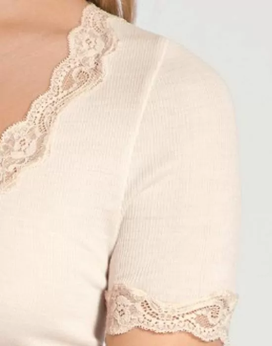 Richesse Lace er en ull/silkeserie fra Calida hvor kjennetegnet er ribbestrikket stoff med blondedetaljer.