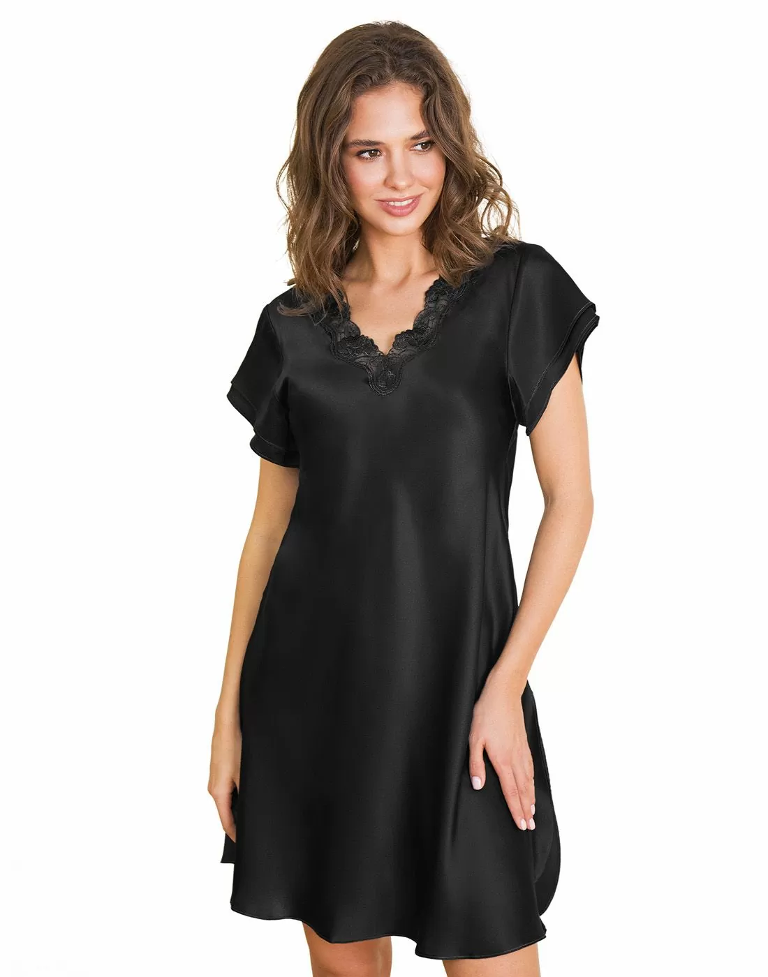 • Nydelig nattkjole med kort erm og blonde.