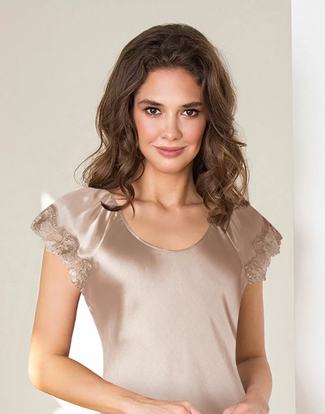 - Nydelig, elegant nattkjole med blank og glatt finish