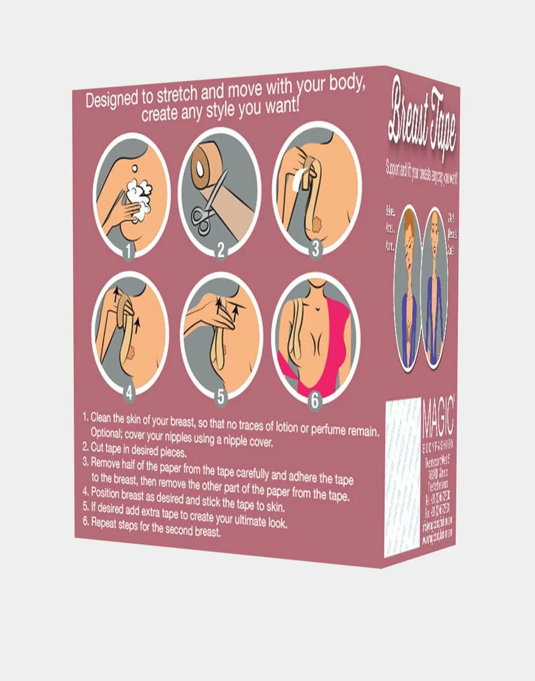 Kan brukes til å tape bysten på plass under spesielle klesplagg
