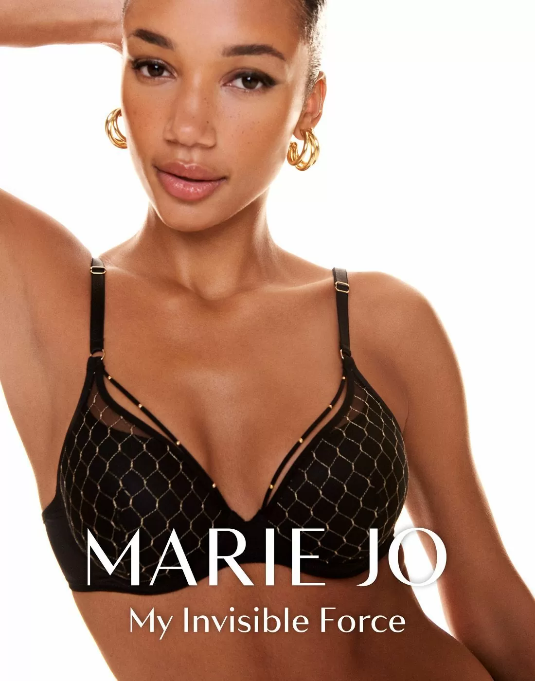 - Mesh med gullbroderi på cupen