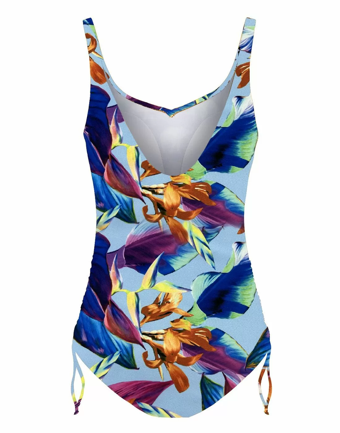 • Skylles med vann i ikke mer enn 30 grader og med mild såpe. Sterke vaskemidler og blekemidler kan ødelegge elastikk og farge på badetøyet.